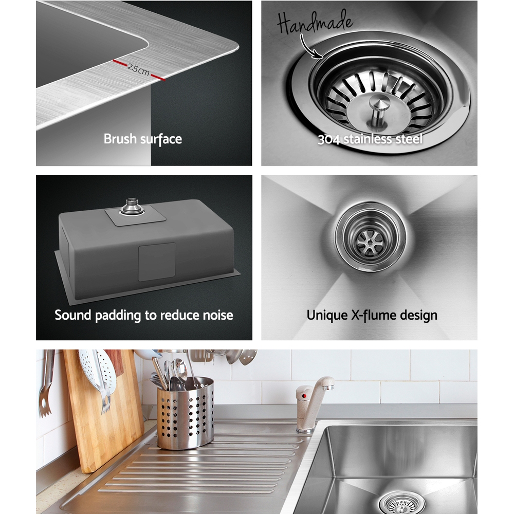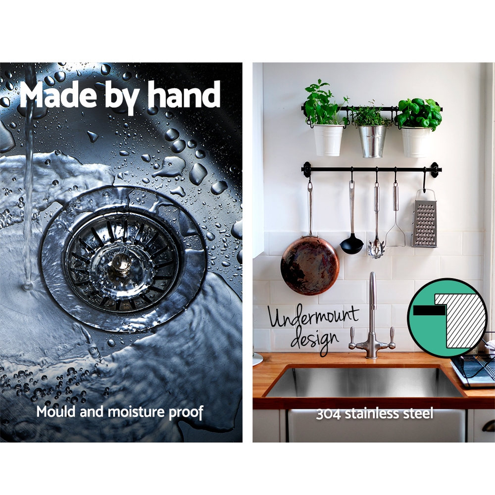 The look and feel of our designer-worthy handmade stainless steel kitchen sink is simply mesmerizing. Silky smooth satin finish with a contemporary square-shape bowl (a paradox indeed) that oozes class and sophistication. The bowl also features a unique X-flume design to facilitate quick flows. Everything about it is design to last: anti-condensation paint, mould-proof, moisture-proof, sound-reduction pads, lead-free and corrosion-resistant.