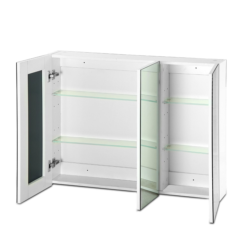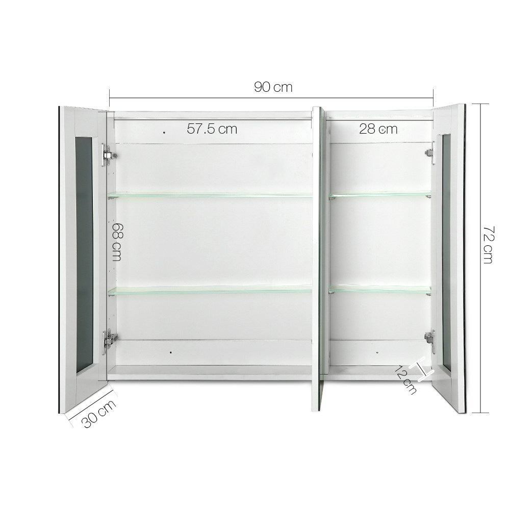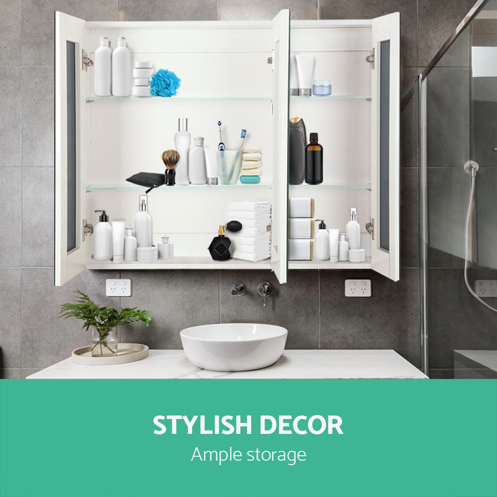 Finished in high gloss PU and made of quality 15mm MDF material, our Storage Mirror Cabinet is designed to be longlasting and durable with a touch of class. The three soft-closing doors open to lots of storage space within the cabinet with adjustable glass shelves to suit your various storage requirements for toiletries, medicine and other bathroom essentials.. Not least, the pencil-edge handles make this Storage Cabinet uniquely stylish whilst the crystal-clear mirrors reflect wide coverage with absolute clarity.