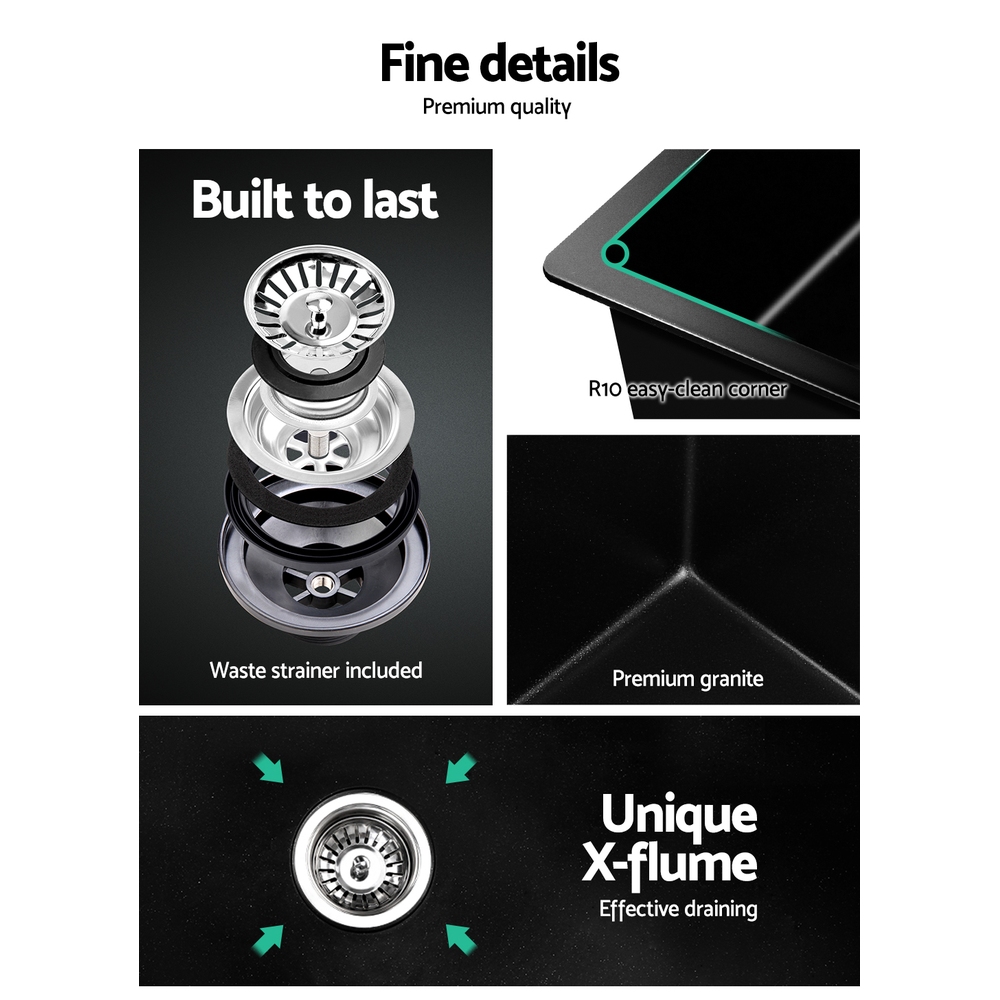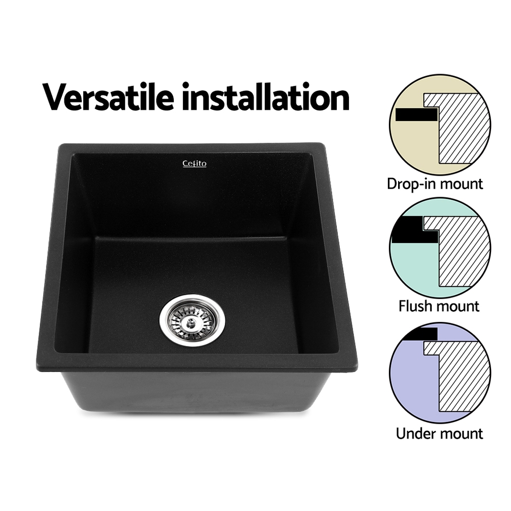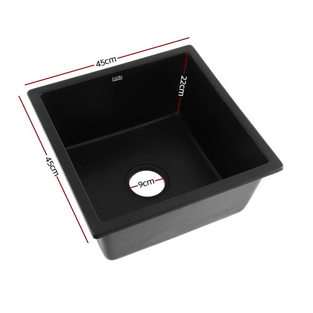 Cefito Kitchen Sink Stone Granite Laundry Top/Undermount Singe Black 450x450mm
