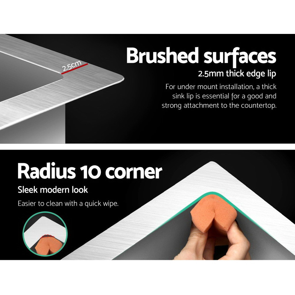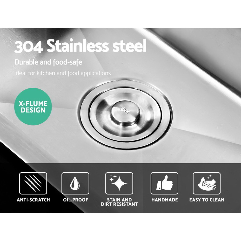 The Cefito Handmade Stainless Steel Sink is built to exacting standards so that you get the very best of quality materials and craftsmanship. It is crafted from heavy-duty food grade 304 stainless steel, unlike others that are made from inferior 201 grade or 304 imitations. Built to be scratch-proof, oil-proof and more importantly, bacteria-free, the silky-smooth satin-coated stainless-steel sink also features an X-flume design for easy drainage, deep and wide bowl for practicality, R10 rounded corners for safety and easy cleaning, eco-friendly anti-condensation paint, and five sound-deadening pads. Suitable for drop-in or under-mount installation, our sink should have a definitive place in your uncompromising kitchen.