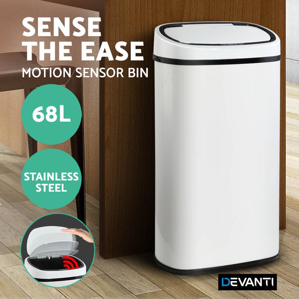 Devanti 68L Sensor Bin White